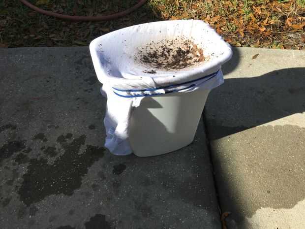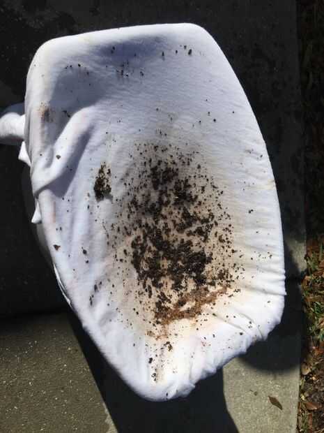 Así que tomé un bote de basura pequeño y había cubierto con una camiseta vieja. Tuve una banda de tipo de Bungee basura yarda que obtuve de una media de Navidad que hizo el truco. Y la tapa del tanque de la válvula de grifo quitado, yo simplemente enjuagar con la manguera del agua capturando el gas remanente y pueden filtrar las partículas en la basura. ¡ Eso es absolutamente una gran cantidad de partículas de óxido! Encontré un montón de hormigas de fuego merecedores a verter la mezcla del gas/del agua sobre y algunas malezas recibió una paliza (por qué desaprovecharla). Esto es donde probablemente debería mencionar que las indicaciones no sugiere qué hacer con los productos químicos y la mezcla de gasolina que son un subproducto de utilizar el kit de... Usted tendrá que decidir por sí mismo y deje que su conciencia sea una guía (Pepito Grillo viene a la mente...)