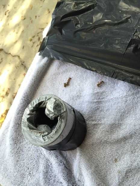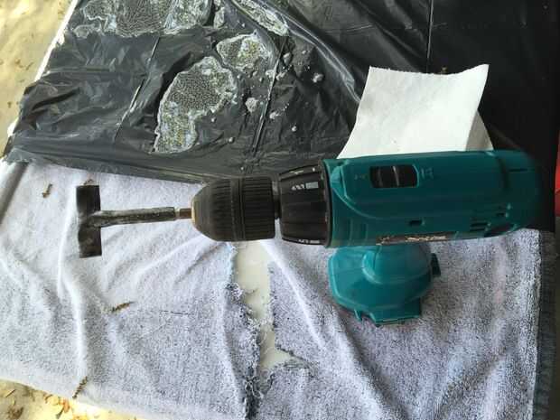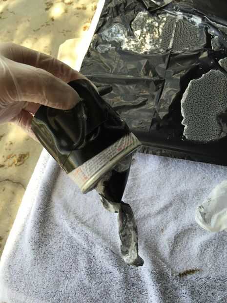 Bien volver a la cinta la llave de purga orificio cerrado (esto es la última vez). Agite bien la lata de sellador, luego abrir la lata. Tuve un tiempo real duro conseguir abierto. Ser muy cuidado porque parece que el contenido había sellado la tapa algunos lo que es muy difícil de conseguir abrir. Hice un agitador de pintura con la cinta de gorila y un tornillo largo para mi taladro inalámbrico. Le di un revuelo bastante largo hasta que el contenido se mezcla muy bien. Esto es donde la magia sucede lo tome el tiempo para asegurarse de que esté bien mezclado. También tomó un guante de látex y grabado sobre el puede abrir dejando el dedo de "birdie" extendido (todos los demás grabado hacia atrás) entonces yo cortar la punta del dedo. Lo utilizado para asegurarse de que todo el líquido mágico hecho en el depósito y no en mi pintura exterior del tanque. También grabado un paño abajo alrededor de la abertura en caso algunos tienes sueltos. Vierta todo en el orificio del tanque de gas luego limpie el área donde cubierta de la cinta se pega y sellar el orificio del tanque de gas con la cinta gorila (tiempo pasado). Hacer lo mejor en este sello o lo mágico va a salir en usted y su tanque, muy mal.