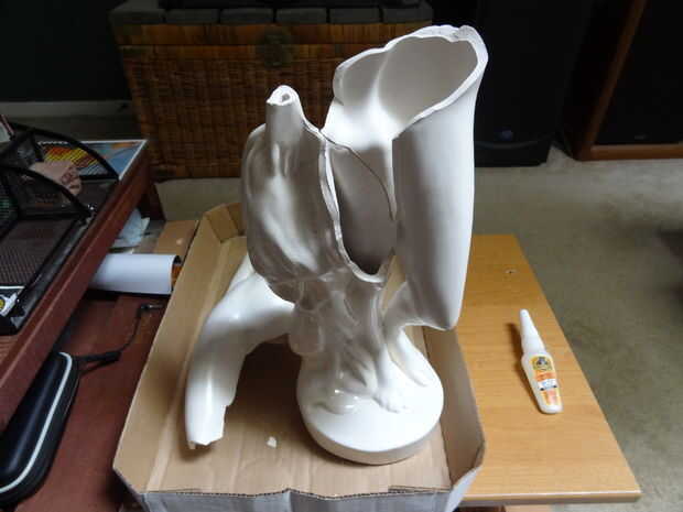 Fue una rotura bastante limpia con la estatua a la izquierda en 3 piezas principales.