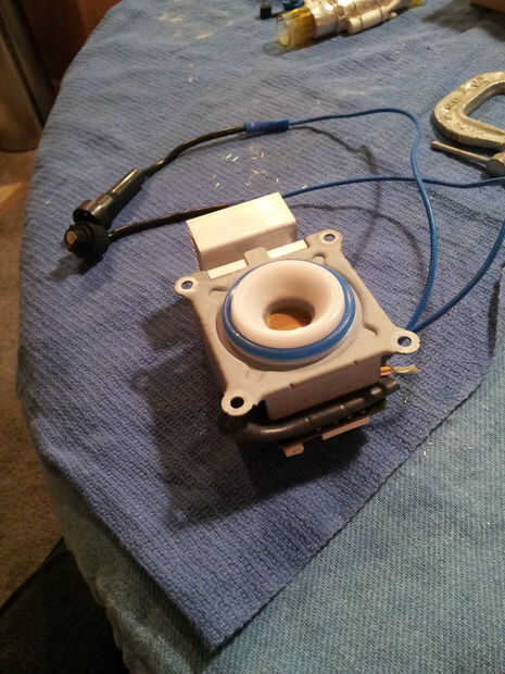 La segunda foto muestra la unidad reparada vibrador ultrasónico, con portafusible a la Junta y un cuadrado de goma insertado en la unidad.