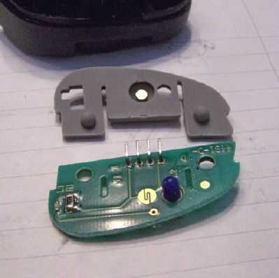 Tercera foto, la placa de circuito se levanta lejos del resto de la estructura switch. Esta foto muestra la capa de goma suave separada de la placa de circuito. Las dos clavijas del arnés de cableado externo interruptor el circuito "a" y "off". Incluso en esta foto pueden seguir los rastros de circuito para el interruptor. Ver los cuadros de texto amarillo, también. Circuito adicional rastros son al otro lado de la placa de circuito. Rastros de circuito más allá de las de los pines del interruptor de exterior se refieren únicamente a la LED indicador de encendido/apagado. Nota: Mi manual tiene un esquema detallado para el sistema de Control de crucero, incluyendo el fallido interruptor On/Off. Mientras que la placa de circuito muestra claramente un simple contacto de encendido/apagado, el diagrama del manual muestra tres conjuntos de dos contactos que hacen o deshacer en pares sincronizados.