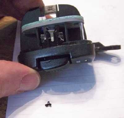 Descongelado para perforar en el centro de lo que queda del árbol y un eje de metal nuevo en el agujero del pegamento. El siguiente paso describe cómo obtener el bloque de plástico transparente de la Asamblea de interruptor de modo que el trabajo necesario se puede hacer para.