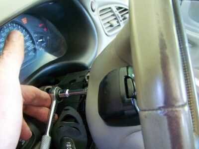 Nota: cuando sea el momento para volver a armar, use cinta para fijar los tornillos TORX T-27 a la unidad de toma. Si no haces esto, el tornillo puede caer fuera del conductor y caen en el interior de la rueda de manejo. A veces estos tornillos se atasque detrás de los arneses y bolsas de aire soportes dentro del cubo de la rueda de manejo. También, después de que la chimenea columna dirección ha encajado juntos necesita en justo en la posición en orden por los tres orificios en la chimenea de la parte inferior para alinearse con los agujeros roscados de metal por encima de la chimenea de fondo. Ésta era probablemente la parte más tediosa de todo el proyecto.