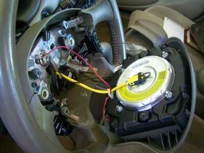 Segunda foto--mi manual informa a llevar a la Asamblea de bolsa de aire para almacenamiento y colocar en su parte posterior por lo que el frente es hacia arriba. Porque no pude hacer el arnés de cableado liberar, elegí Coloque el conjunto bolsa de aire en la cima de la columna volante frente el velocímetro. Esto simplemente debe ser suficiente.