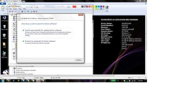 2: haga clic derecho sobre arduino leonardo en otros dispositivos y elige actualizar controlador