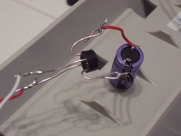 Fije el condensador de positivo a positivo y negativo a negativo.