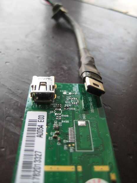 Desde aquí usted tiene una opción para hacer, será la soldadura en el cable que ahora tenemos que trabajar con o comprará un nuevo USB cable y enchúfalo en. Antes de decidir, tenga en cuenta que el cable USB es un poco especial ya que allí no es plástica voluminoso alrededor del alambre. El cable va directamente del cable con el fin de la USB, esto es necesario porque no hay espacio entre el conector hembra en el tablero y el tablero sí mismo.