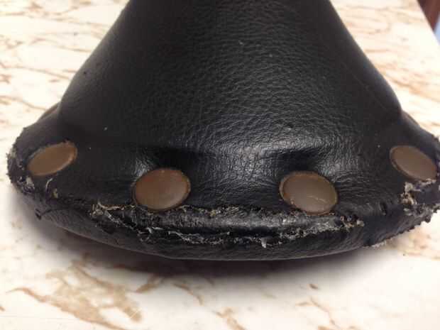 En este punto después de pegado debe ser capaz de tomar la silla de paseo y no tener el vinilo separado. Si no hay nada bajo el vinilo para pegar a debe pensar en colocar algún material por debajo y pegar el vinilo a ella como un parche por debajo.