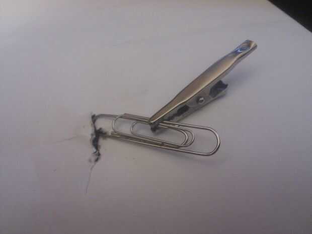 También me di cuenta de que tenía un par de pinzas de cocodrilo que sería muy útil para unir cosas. Mucho mejor que el alambre torcido.