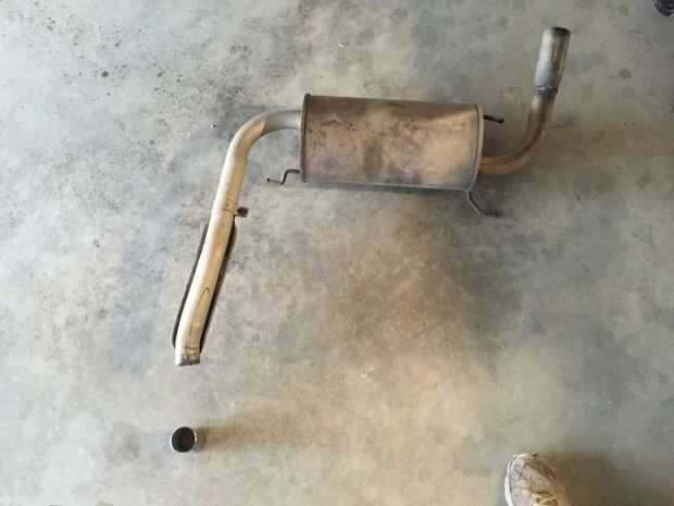 La sección del tubo de escape que yo estoy reparando en este Instructable, fue lugar de una pinza ancha de 2 pulgadas en el protector de calor para evitar vibraciones. Con el tiempo agua trabajó su manera entre las piezas de metal y las propiedades galvánicas de metales disimilares descompusieron lo lejos dejando una franja de metal sosteniendo la midpipe al silenciador. Para mi alegría el resto del tubo de escape parece ser buena y golpeando con un martillo de bola no causó cualquier otras secciones no. Había rompió otra parte sólo habría substituido del catalizador hasta el silenciador. Esta corrección consiste en alrededor de $10 en partes. Millaje real puede variar para su aplicación.