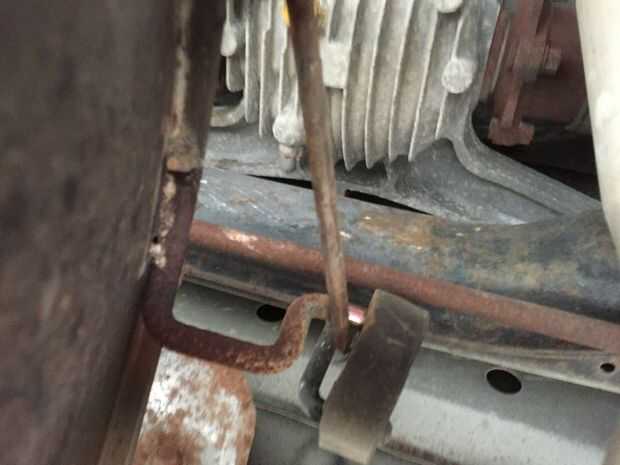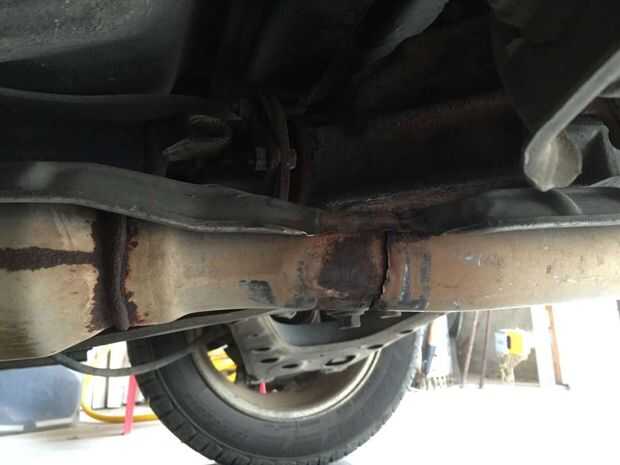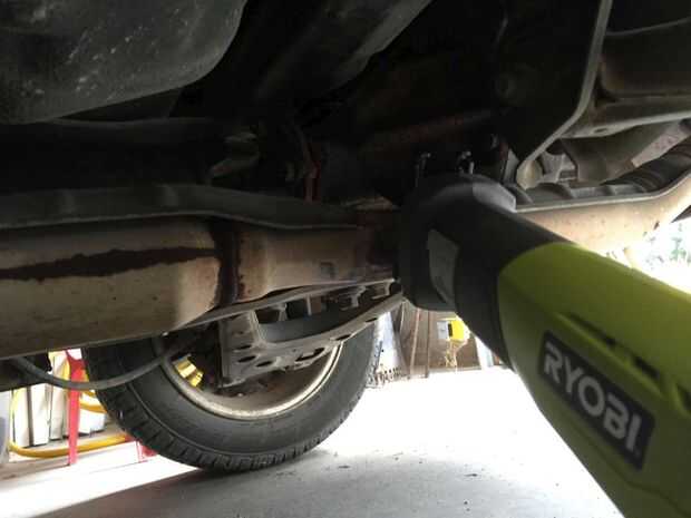 • Con un destornillador como un prybar (no recomendado) suavemente apalancar las suspensiones de goma de mi silenciador y trabajado el silenciador en el eje trasero y debajo del vehículo.