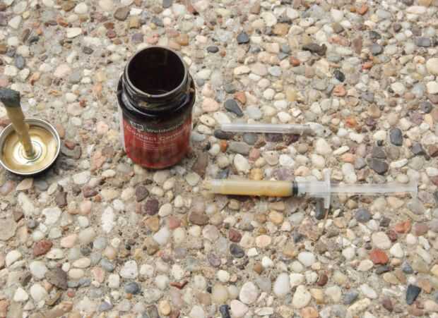 Cuidadosamente y retire la aguja y llene la jeringa con el adhesivo. Luego vuelva a montar la aguja.