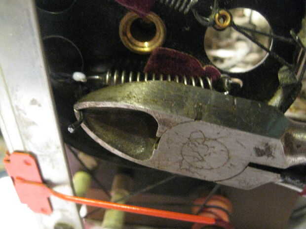Por último, corte cualquier exceso de cordel para que no quedar atrapado en algo. Por cierto, es donde también podría ajustar la aguja de ajuste si no corresponde con las marcas de teléfono. Como he mencionado anteriormente, está conectado a la otra cuerda en la polea.