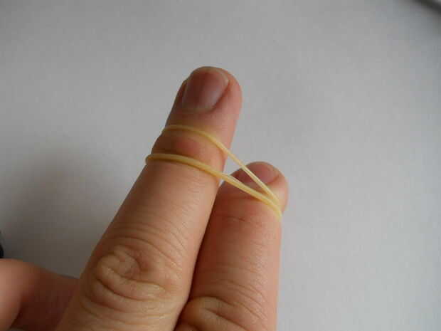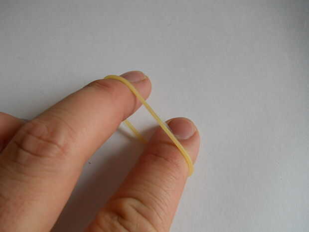 Gancho de goma del condón (usarlo en dos bucles) en las piernas el gancho y pasarla a través de la cadera.