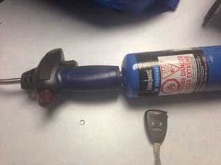 Utilizando la pastilla pinzas el anillo de metal y la posición de la división así que puede ser calentado para arriba. Tomar el aro metálico y colocarlo en la llama de la antorcha de propano. La punta de la llama azul brillante es el lugar más caliente. Caliéntelo hasta que el borde del anillo es de color rojo brillante, que brilla intensamente caliente. Listo para el paso final.