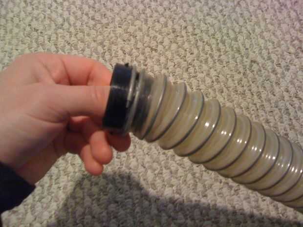 Primero, sumerja el extremo de la manguera en agua caliente, hasta e incluyendo las pestañas, para ablandar el plástico y hacer todo un poco más flexible y viable. Tomar un descanso rápido y remojar la manguera durante unos 5-10 minutos.