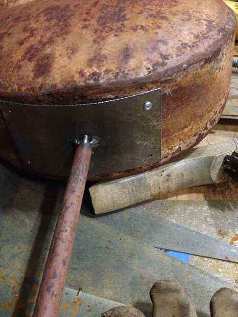 Para instalar el parche para el cuerpo, apuntalado el pollo y el montaje de poste/parche permanezca más o menos donde necesitaran. No había perforado agujeros de remache en el cuerpo del pollo, ya que necesitaba para ver cómo la curva del parche afectaría su colocación. Perforado y me clava una esquina primero, para mantener el parche en su lugar. Luego perforados los otros tres y les clava. Usé una remachadora de mano simple y remaches de aluminio.