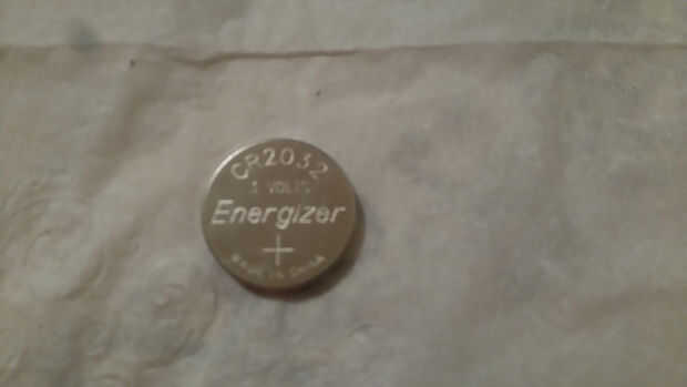 Insertar la hoja del cuchillo debajo de la batería y quitar de su titular. Tenga en cuenta cómo está montada la batería. Hay un negativo y un positivo. En la fotografía están viendo el lado negativo hacia arriba. El otro lado está claramente marcado como positivo y tiene el nombre del fabricante. Antes de poner el fob detrás juntos, doblar el dedo de metal un poco por lo que toca la batería con más fuerza. Si tienes un medidor, asegúrese de que la batería es de más de tres voltios. Mi medida fue 3,15 voltios. También puede reemplazar la batería si quiere.
