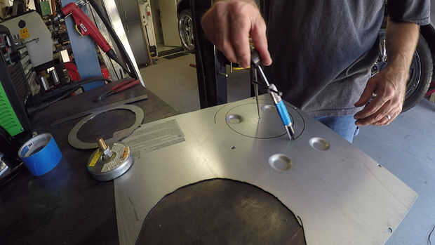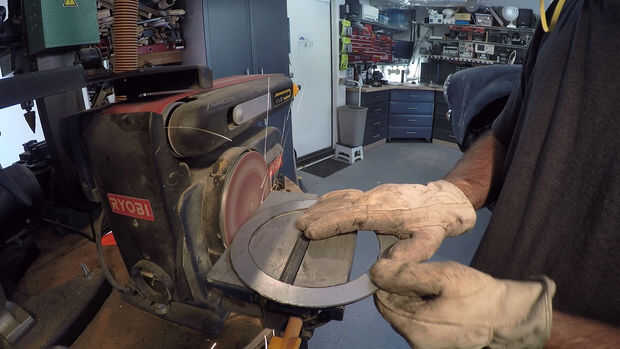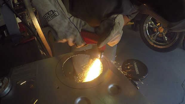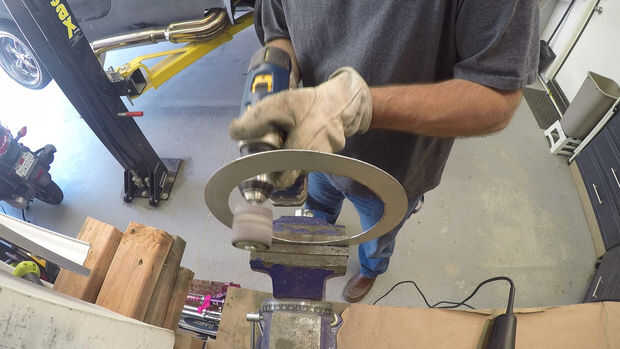 Encontrar algunas láminas de metal y cortar una forma de donut fuera de ella que coincide con las dimensiones de la cresta superior. La forma de donut que corte era un círculo de diámetro 7 y 7/8 de pulgada con un 6 pulgadas 1/16 agujero en él. Usted querrá asegurarse de que el metal de hoja es lo suficientemente grueso - la chapa que utilicé era 1/16 de pulgada gruesa y trabajó bien. El metal de hoja de corte y pulido de los bordes será un trabajo. Si tienes una sierra de calar con una hoja de corte de metal que probablemente trabajaría mejor. También podía perforar un montón de agujeros. Me ha pasado tener un cortador de plasma que hizo el corte áspero. Todavía tenía que moler abajo de los bordes para que sean suaves. Perfore un orificio de inicio y el uso la sierra caladora para recortar el agujero. Aquí hay un enlace a medidores de espesor de metal de hoja para la referencia.