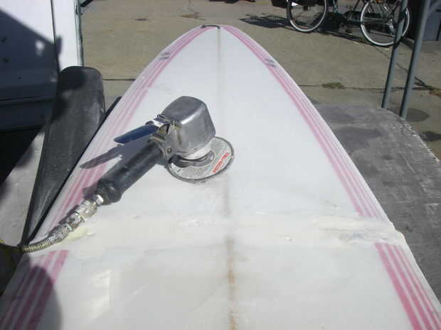He probado un montón de herramientas para ver qué era lo mejor para aplanar la articulación. En primer lugar, he utilizado una hoja gruesa en mi neumático "cepillo" para aplanar la zona de la articulación y justo con la Junta. Esta herramienta es una lijadora oscilante. Si eres una persona barco usted puede reconocer este proceso como accionado "embarque largo" que es una zona con un trozo de papel de lija sobre una tabla larga del carenado.