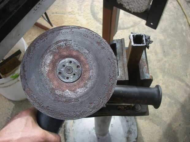 ¿Cómo se quita esta mierda? Al tratar de. Este gran disco lija consiguió todos cubierto de mierda. Luego limpié el disco lija raspando en ese fragmento de tubería cuadrada de acero en el fondo.
