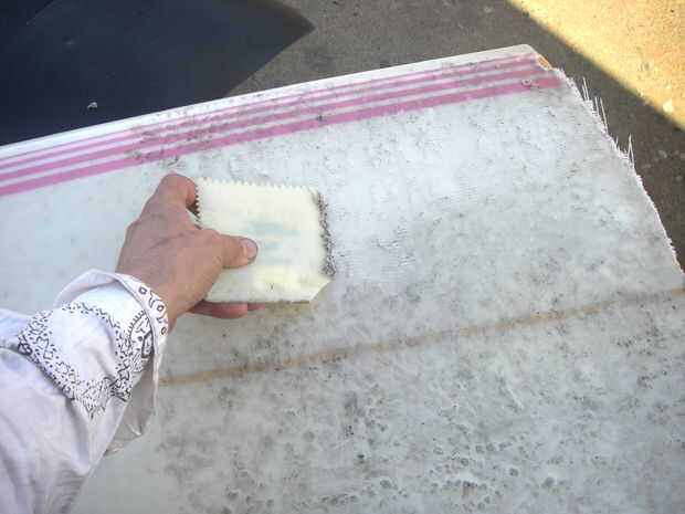 También se puede utilizar un "peine" que es una herramienta texturas similares de cera que venden en tiendas de surf para este propósito.