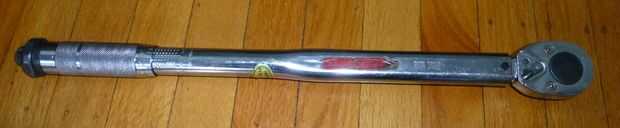 La forma de esta llave se supone que funciona es esto: usted marcar en el esfuerzo de torsión girando la manija hasta que la lectura grabada en la empuñadura coincide con sus requisitos. Gire la perilla en el extremo para fijar este ajuste. Puede entonces coloca el enchufe en la cabeza y apriete la tuerca hasta que la llave hace un sonido de "clic". Como se trata de una "precisión" medidor, sólo se debe utilizar para medir y ajustar el par de apriete de los tornillos, no debe ser utilizado como un trinquete de accionamiento. Lo que quiero decir por que la debe apretar el perno de tuerca por lo menos dedo apretado con otro trinquete o herramienta por lo que sólo está utilizando la llave dinamométrica para comprobar y ajustar esa tirantez a la torsión requerida.