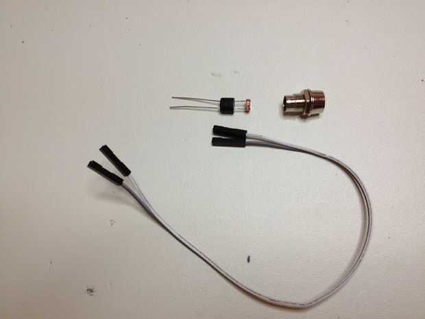 Puesto que los fotorresistores montado al chasis mediante soportes LED, necesitaba una manera rápida y fácil para desconectarlos de la placa de circuito durante y después de la construcción. Tan sólo conecté uno de los extremos de los cables de puente de la mujer, mujer a cada cable de la fotorresistencia y el otro extremo con los pernos de la Junta de proto. Los espaciadores de goma en los soportes LED mantienen los cables de tocan y poniendo en cortocircuito hacia fuera.