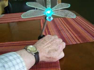 Suponiendo que la batería no está completamente descargada, prueba de la luz cubriendo la célula solar con la mano. El insecto de plástico transparente debe encenderse en diferentes colores como el LED cambia de un color a otro.