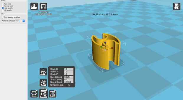 Asegúrese de que el modelo está sentando en su lado plano al igual que la foto de arriba. Compruebe también si el tamaño del modelo es el mismo tamaño que la imagen de arriba. Usted puede utilizar el alta o Ulti calidad porque va a ser una fuerza en el modelo, pero no quiere romper tan fácilmente.