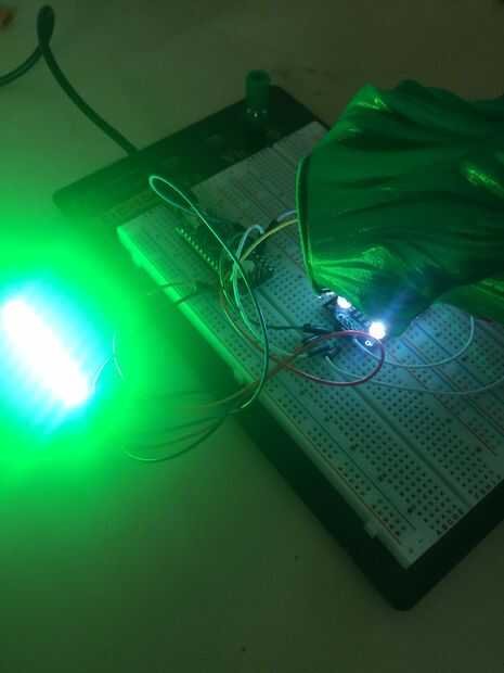 Re sube el código y poner algunas cosas coloreadas en la parte superior del sensor. El LED debe cambiar el color del objeto. También hice un boceto de procesamiento que se puede descargar que cambia el color de la pantalla basándose en el color detectado, puede que tenga que cambiar el puerto COM en el bosquejo sin embargo.
