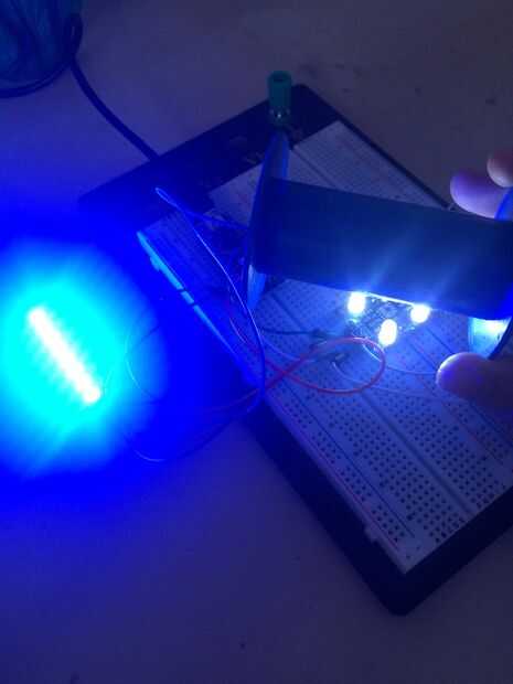 Coloca el papel blanco alrededor de 2,5 cm (1 pulgada) delante del sensor y usted debería ver los valores de medición subir. Anotar el número de cuenta máxima para cada color.