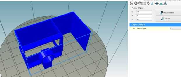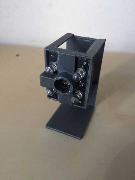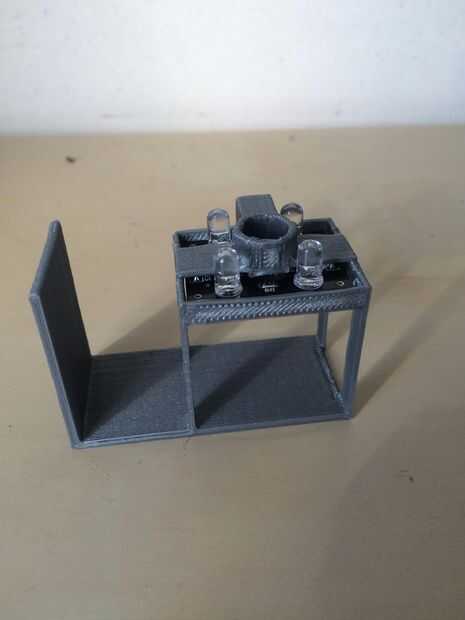 Para sostener y alinear el sensor hacia el rollo de filamento, creé una pieza 3D que se puede imprimir. Simplemente imprimir con una altura de capa de 0.25mm y preferiblemente con un no brillante negro filamento y orientados como se muestra en la imagen.