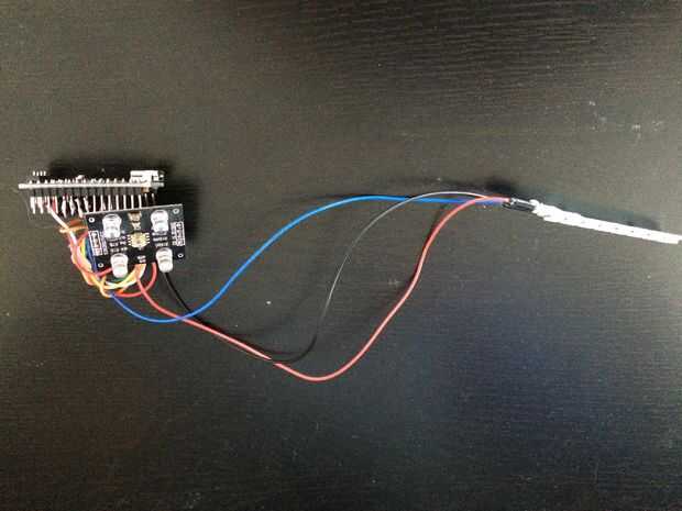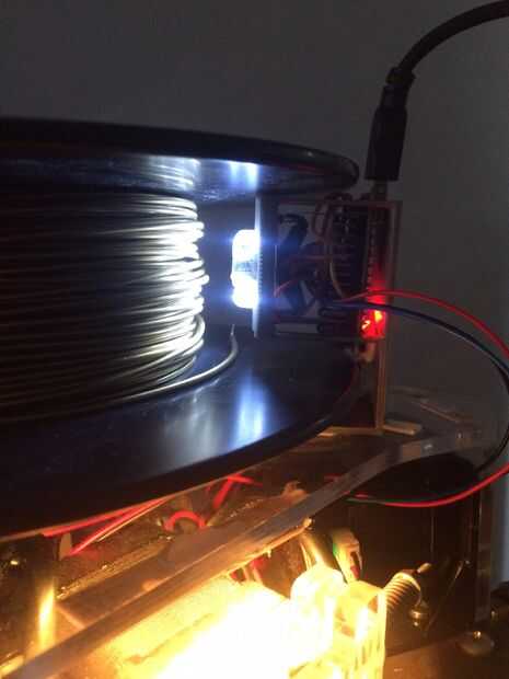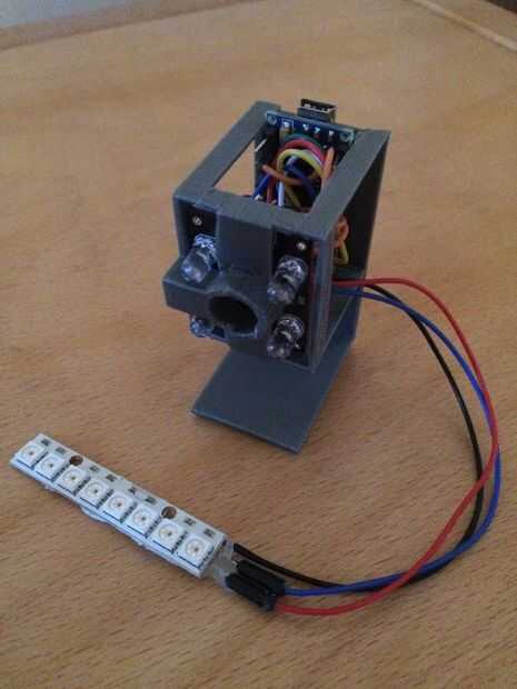 Montar el sensor de los cables a los conectores en el Arduino Nano soldadura y conectar la tira RGB con cables más largos para hacer posible montarlo en la impresora
