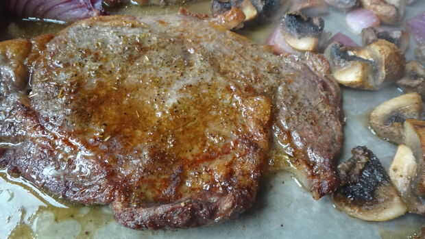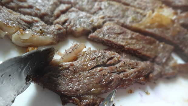 Sacar del horno. Cortar en cuadritos el filete y mezclar con las verduras y jugos en un cuenco de la cacerola. Si tienes hierbas frescas ahora es el momento de añadirlo.
