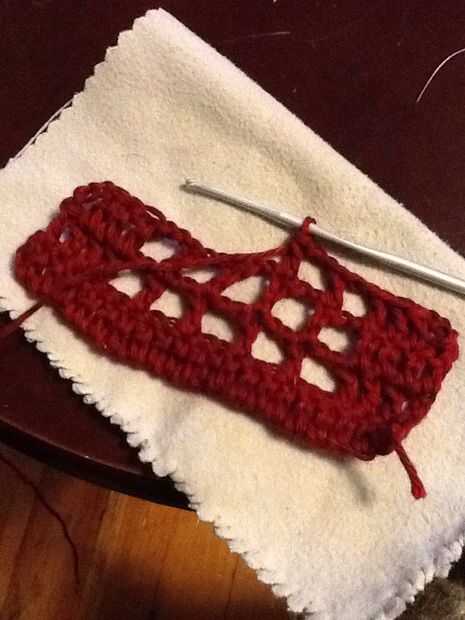 Doble crochet en siguiente 3 puntos de la fila anterior, cadena 2, saltar dos puntos de la fila anterior y doble crochet en el punto tercero. Repita el ganchillo doble cadena dos hasta que hay cerveza de sólo tres puntos de sutura en la fila anterior, doble crochet en cada uno de ellos, cadena tres y gire.