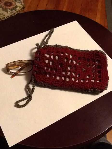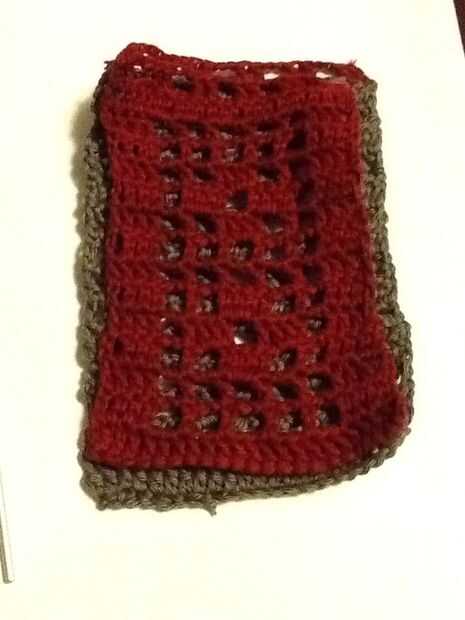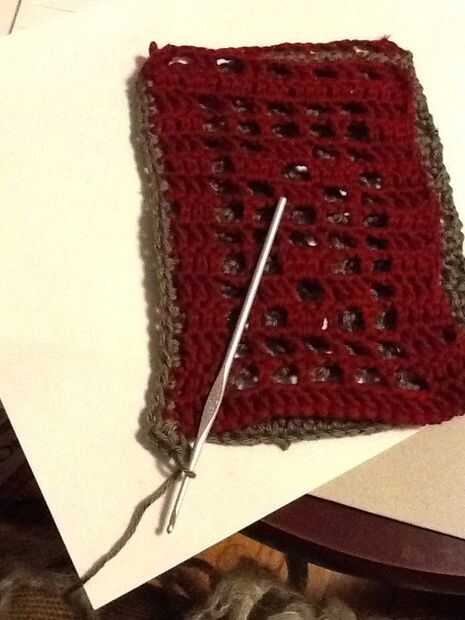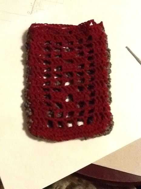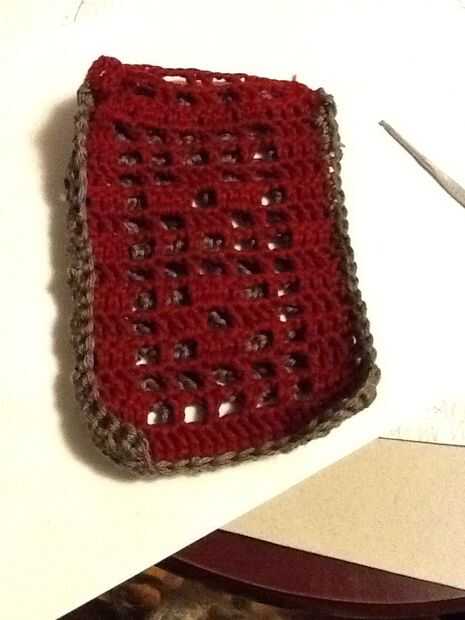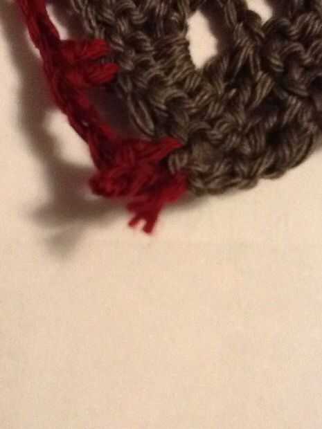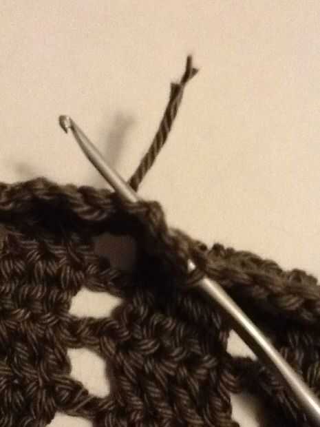 Desde el extremo inicial de la cadena (de gancho) Instale un perno de seguridad para facilitar el tejido y tejer la cadena larga a través de la parte superior de la caja (el 2dc cadena 2 borde superior) y luego coser los extremos de la cadena junto por resbalones, fije apagado y tejer el extremo suelto de la cadena.