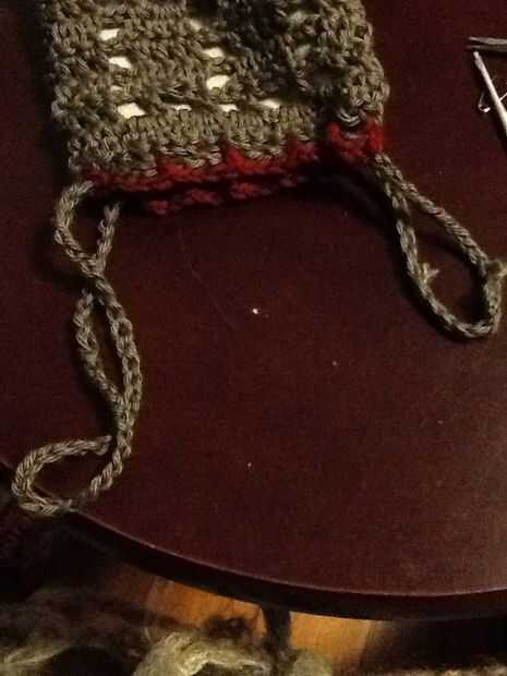 Puntada de cadena una cadena la circunferencia de la abertura y bastante más para atar cómodamente, tal vez la cadena de 90-100. No fije apagado.
