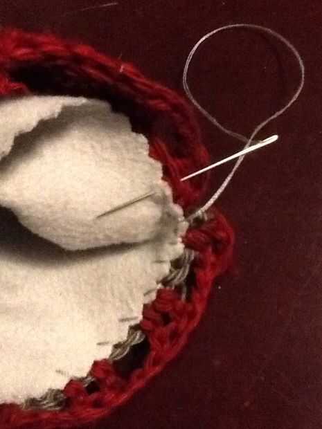 Punto bajo en el lado en la parte inferior y por el otro lado de la fila 14. Fije apagado, armadura de extremo suelto a través de la costura. Vuelta de adentro hacia afuera.