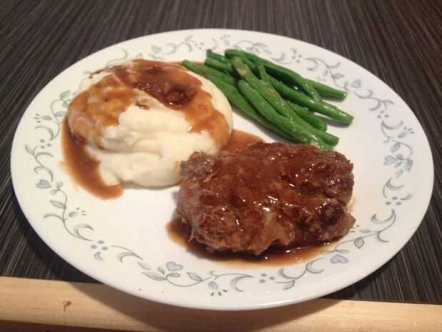 Salisbury steak es una decepción clásico de la cocina fácil americano, servido en bandejas de plástico de la cafetería y de cajas de alimentos congelados del mar al brillante mar. Generalmente se acompaña de una salsa semi clara que pretende tener al