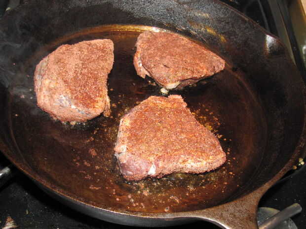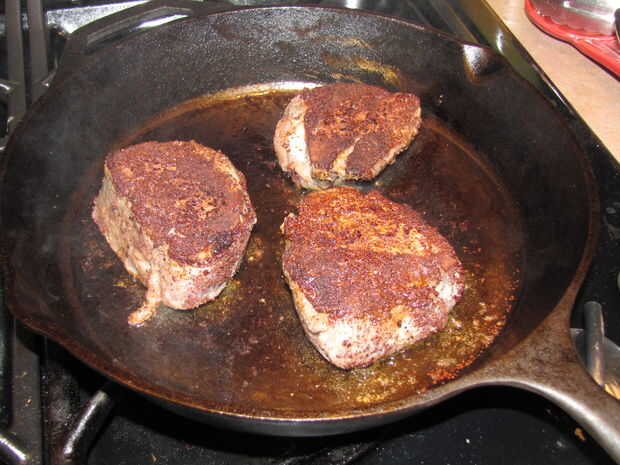 Algo que no menciona un montón de cocineros de la TV es que aunque puede ser que consigas una buena corteza en un filete por cocinar en alto hasta su punto de cocción deseado (medio raro o medio, para el amor de JEBÚS!) también la posibilidad de quemar el infierno fuera de cualquier mezcla de especias que pones en ellos. El resultado final será un ennegrecido exterior y probablemente un interior poco común.