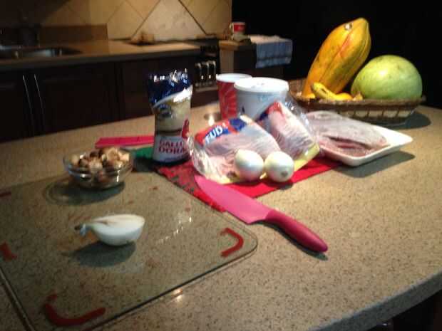 giro creativo en la tradicional boloñesa salsa usando tomate "Pometa" fresco y con Solomillo en rodajas finas y de queso de parmesano recién rallado.Paso 1 - limpiar y preparar los productos y filete mignon-Las cebollas y las zanahorias estén li