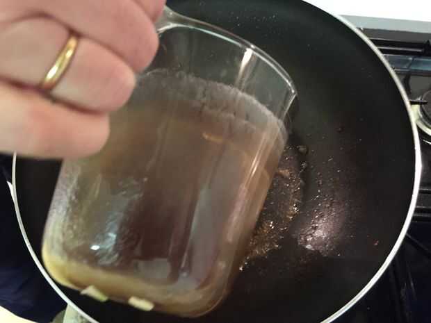 Verter en la salsa. Preparado a partir de un granulado, mezcla o stock. Sobre una pinta medio debería ser suficiente.
