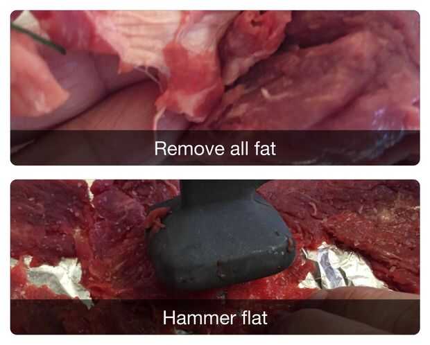 Se retira toda la grasa y la carne entonces se rebanan fino.