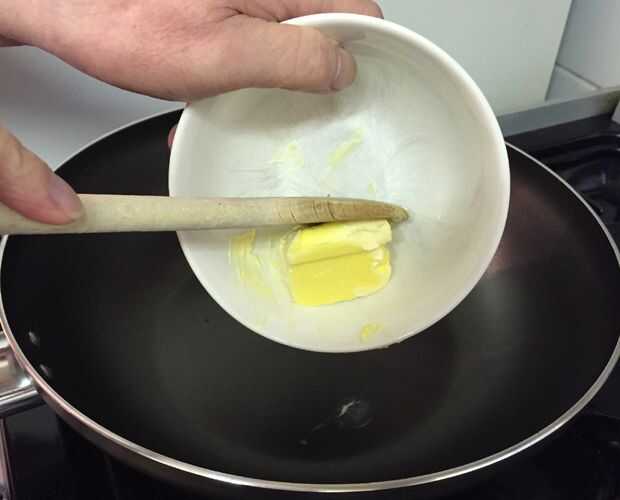 Derretir la perilla de la mantequilla en el wok.