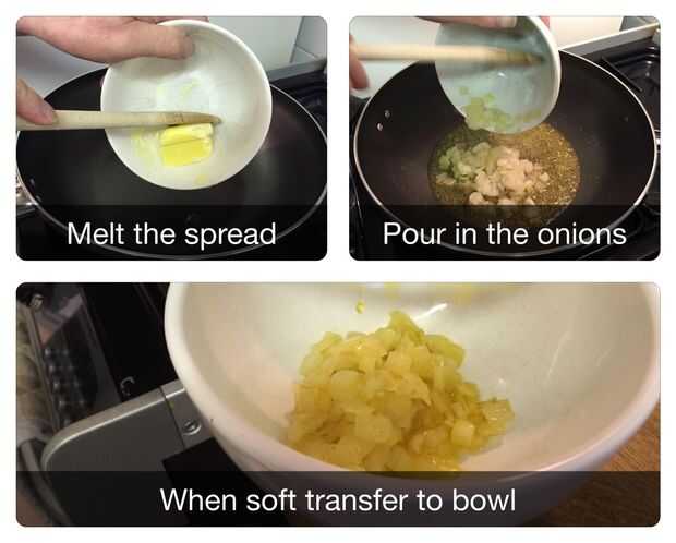 Transferencia justo la cebolla blanda en un bol o en un plato. Dejar todo el jugo.