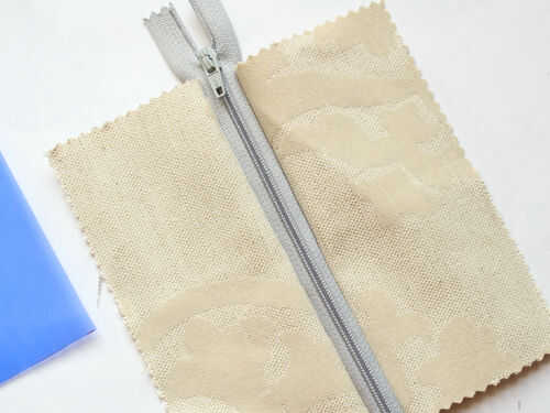 Zig zag al borde de la tela que se cose la cremallera en el. Y cose en el. (Sugerencia: Utilice el prensatelas, o mover la posición de la aguja, para coser fácil).