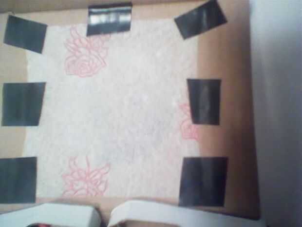 Cortar la servilleta (o lo que elijas) grande suficiente para cubrir el orificio de salida, cinta abajo asegurándose de no dejar agujeros donde se escapará.