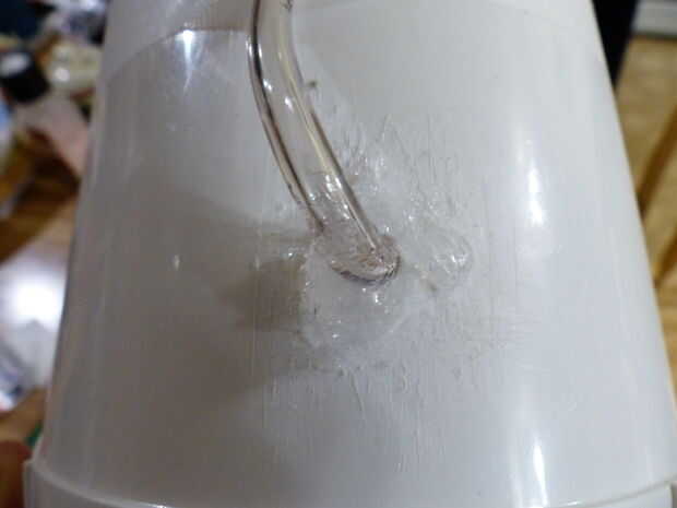 Una vez que fue hecho, glop más pegamento en el agujero, dentro y por fuera para sellar completamente el contenedor a la tubería. Otra vez, 24 horas es necesaria para curar el sellador.