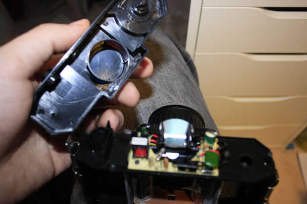 Levante la parte superior toda recto. Si tienes una de las versiones con un flash, necesita para asegurarse de que no pierdes el interruptor de plástico negro poco.